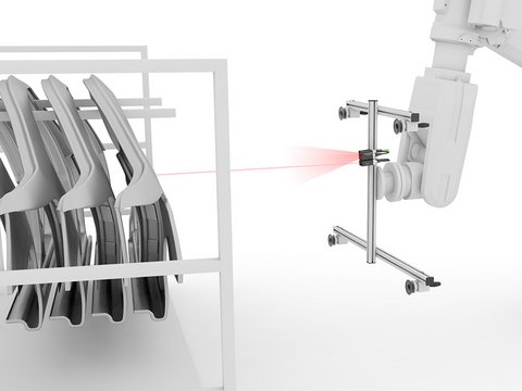 Der Einsatz mobiler Roboter muss sicher und effizient sein. Dazu muss die Größe der Sicherheitszone präzise definiert, aber gleichzeitig möglichst stark verringert werden, um dem Arbeiter maximalen Bewegungsspielraum zu ermöglichen. Der VISOR® Robotic ermöglicht mobilen Robotern, mit der Target Mark 3D-Technologie, sich genau an der Arbeitsstation einzumessen und dort z.B. sich über einen Stecker mechanisch zu verbinden.