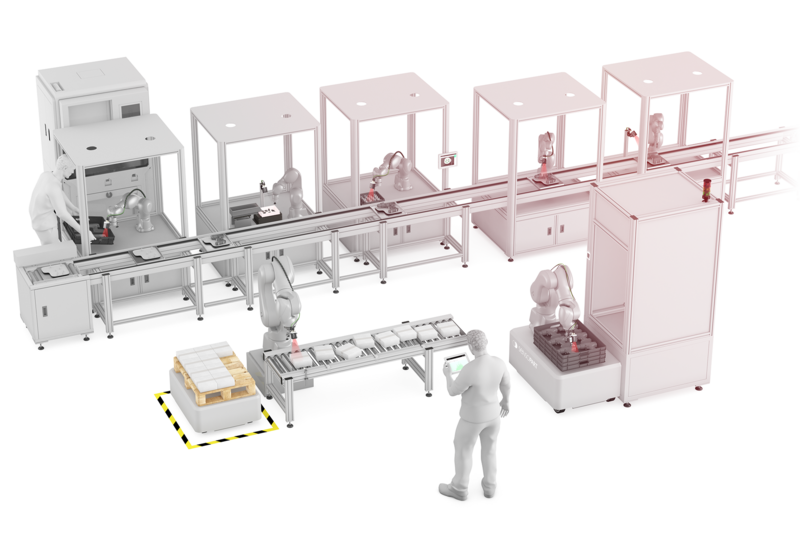 The position of components supplied in a tray can vary so strongly that robot guidance is necessary.